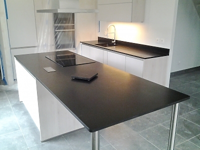 Plan de travail en granit Noir Zimbabwe finition effet cuir