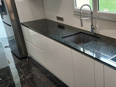 Plan de travail en granit Labrador Vert finition polie