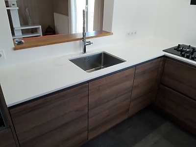 Plan de travail en quartz Unistone Bianco Assoluto finition polie