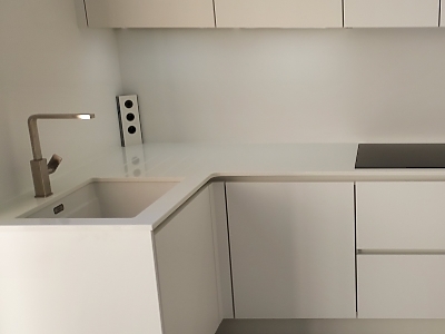 Plan de travail en quartz Unistone Bianco Assoluto finition polie