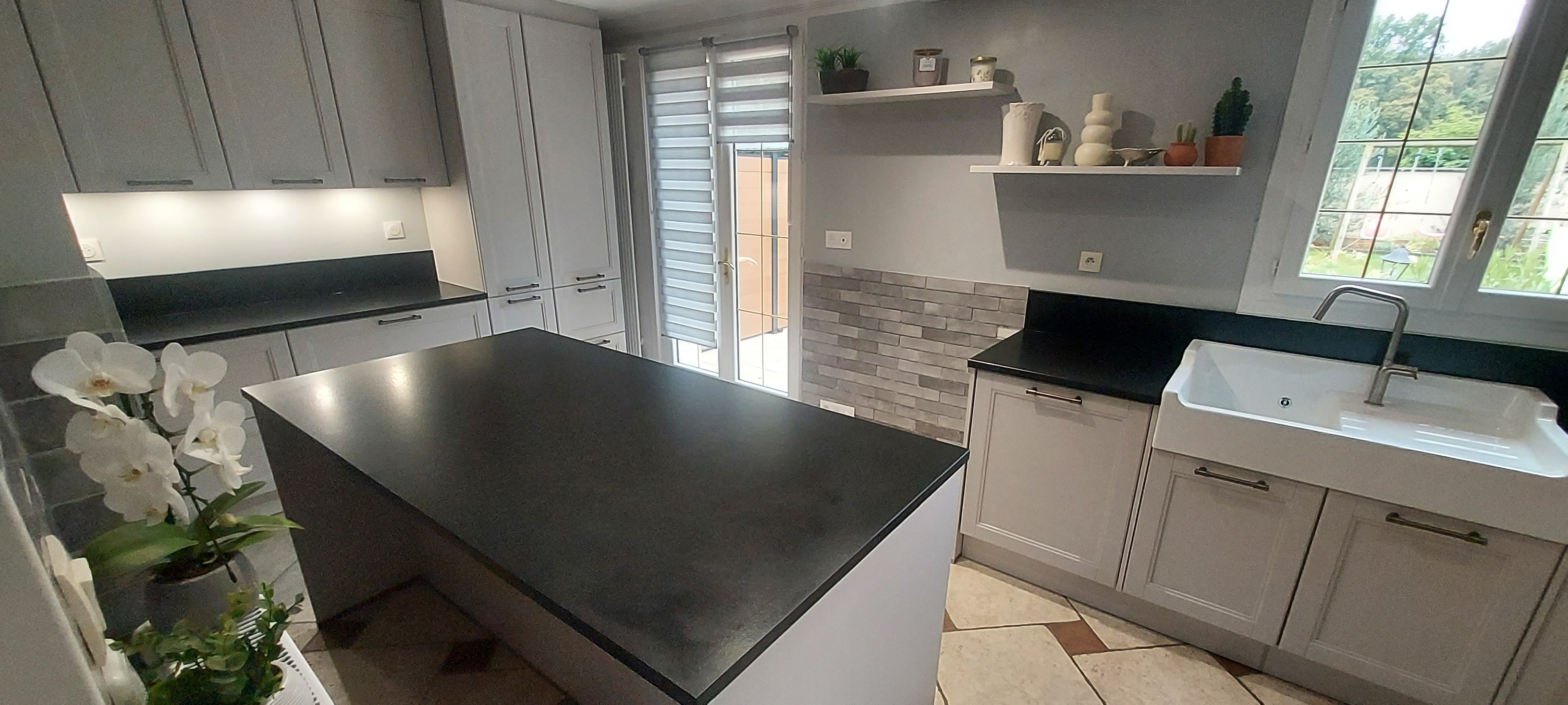 Plan de travail en granit Noir Zimbabwe finition Effet Cuir